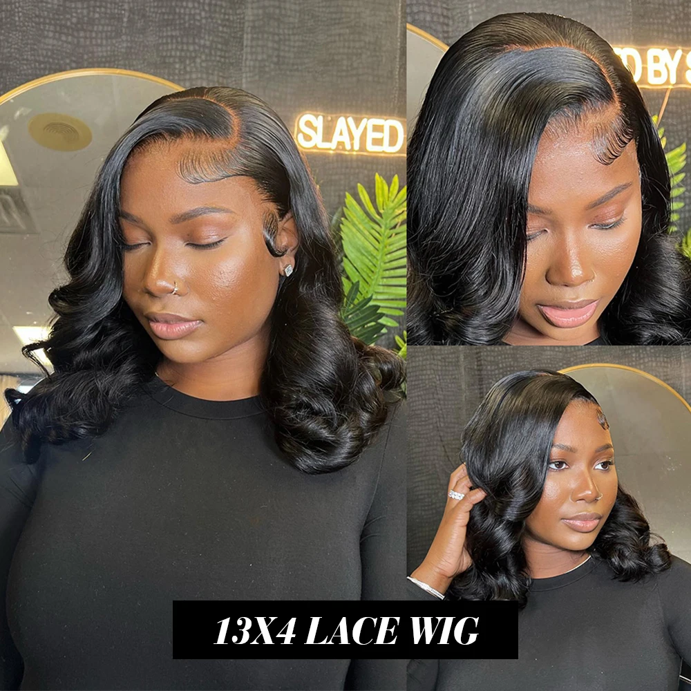 Hair Texture:Body Wave Bob Wig; Natural Black Color; 200% Density, Full & Thick.