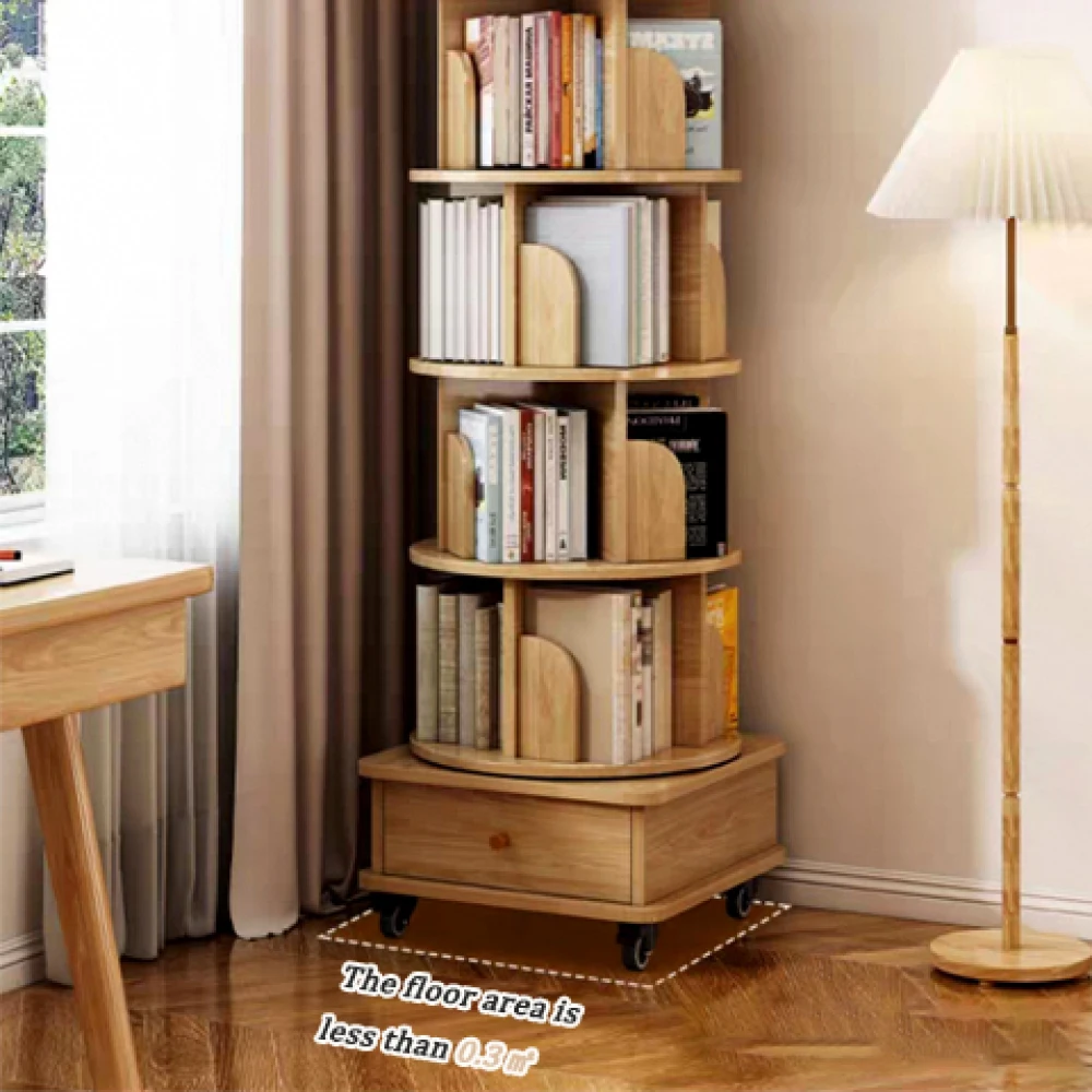 • {Original Wood Style, Suitable for Multiple Home Styles} The rotating bookshelf adopts natural original wood color, with a warm texture, creating a simple and rustic atmosphere. Whether it is a modern minimalist style residence or a space full of traditional charm, it can be seamlessly integrated. With its unique design, it becomes the visual center of the entire space and enhances the style of the space.